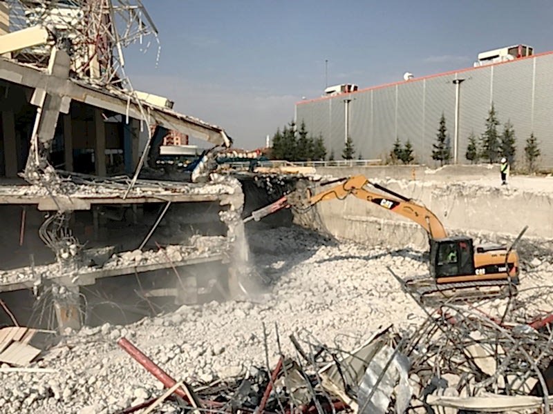 Skyland AVM Kısmında ki İçerik Değişikliğinden Dolayı 2.000 m2 lik Kısmi Yıkım Yapılması. C50 Beton Kalitesine Sahip Binanın Çene İle Yıkımı